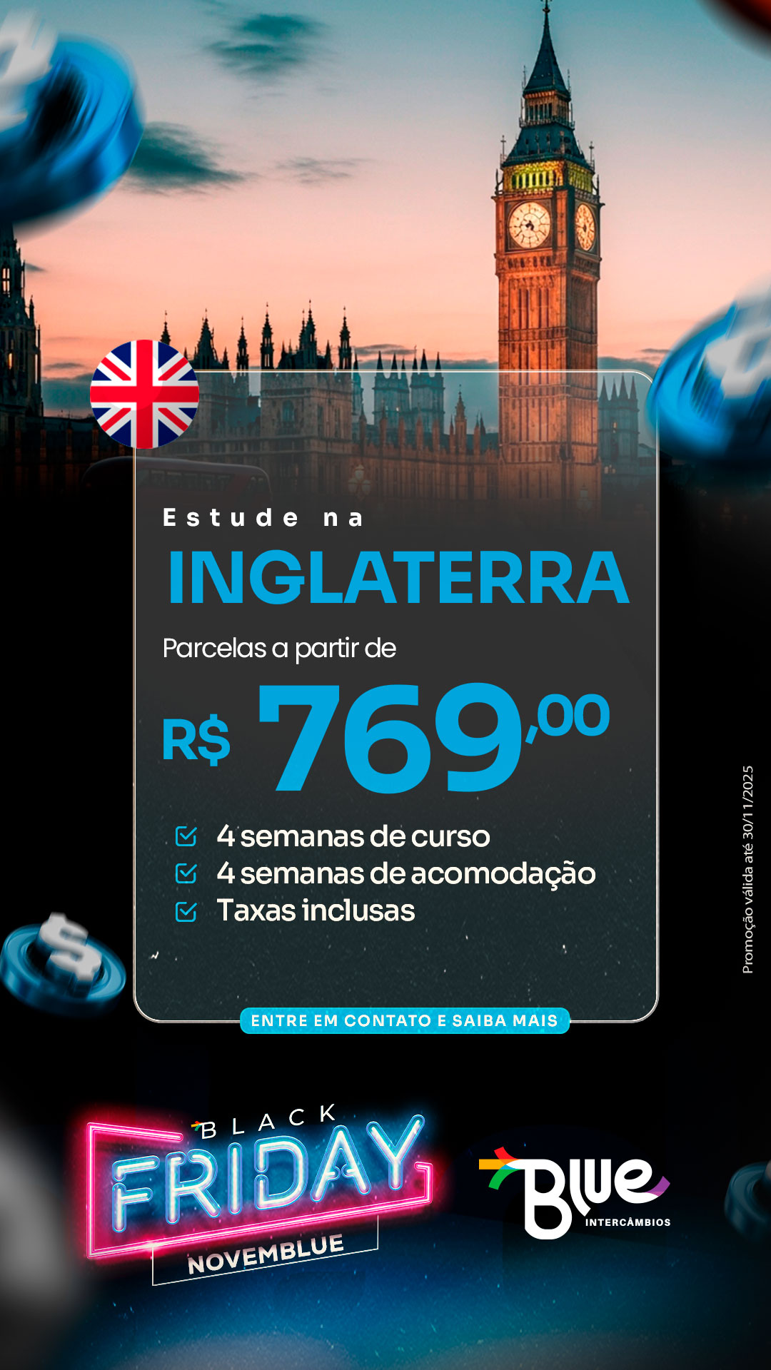 Berço de muita história, a Inglaterra, com sua tradição e estilo britânico mundialmente conhecidos, é o destino para quem quer se aprofundar na vivência do país dos Beatles, aprender inglês e se conectar com pessoas de diversas partes do mundo. A cultural britânica pode ser descoberta em suas diversas cidades, cada uma com um estilo mais predominante seja mais de interior, litoral ou urbano.