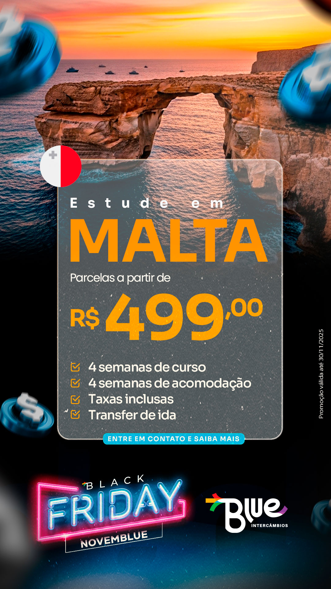 Malta se destaca por seu clima excepcional, beleza natural e ambiente seguro. Além disso, a combinação de inglês falado amplamente, escolas de qualidade e custo de vida acessível torna Malta um destino único para aprender o idioma.